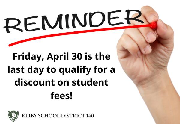 Online Registration/Fee Payment Discount Deadline Is April 30 | District